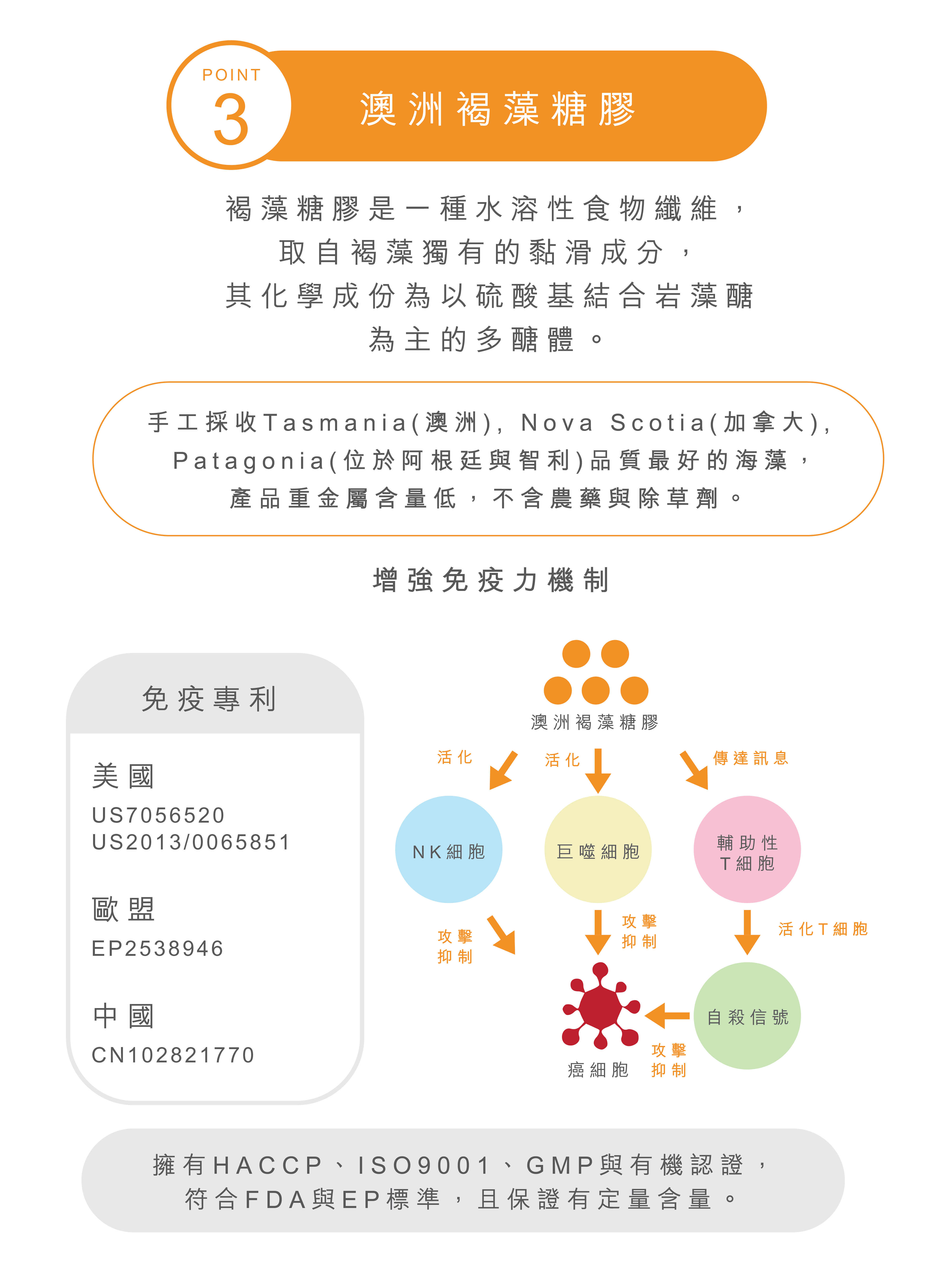 ・含 β-聚葡萄糖胺(專利)、褐藻糖膠與牛肝粉,作為健康維持補給